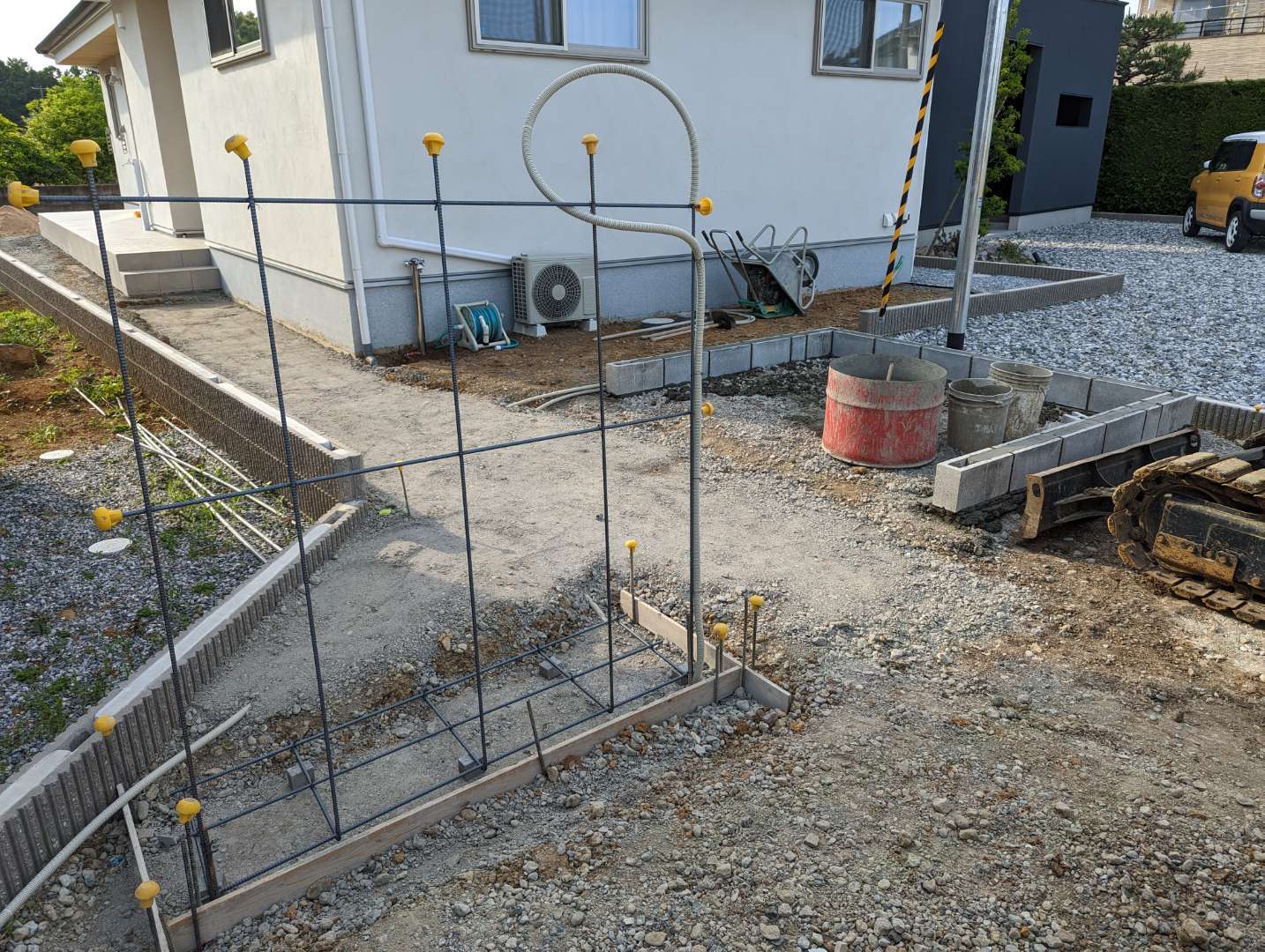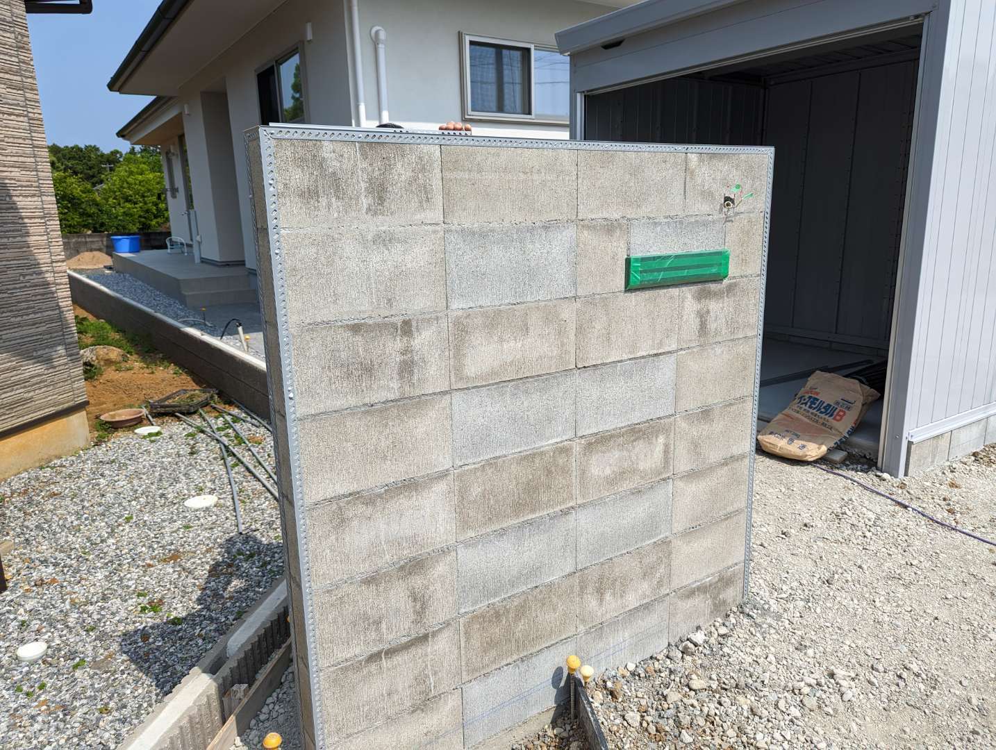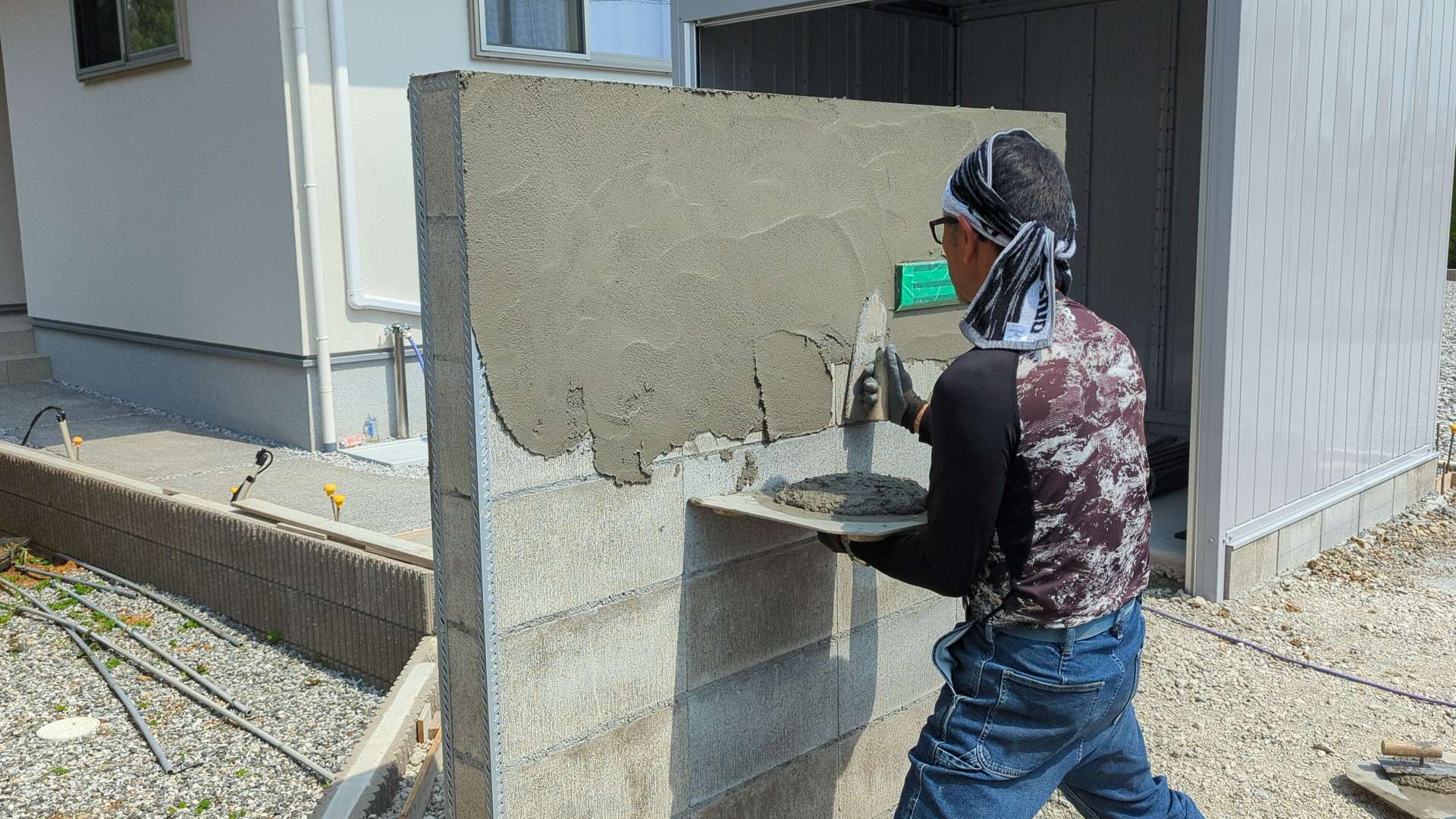 ブロックを積むのも将来倒壊してしまわないように中に鉄筋を通しています。