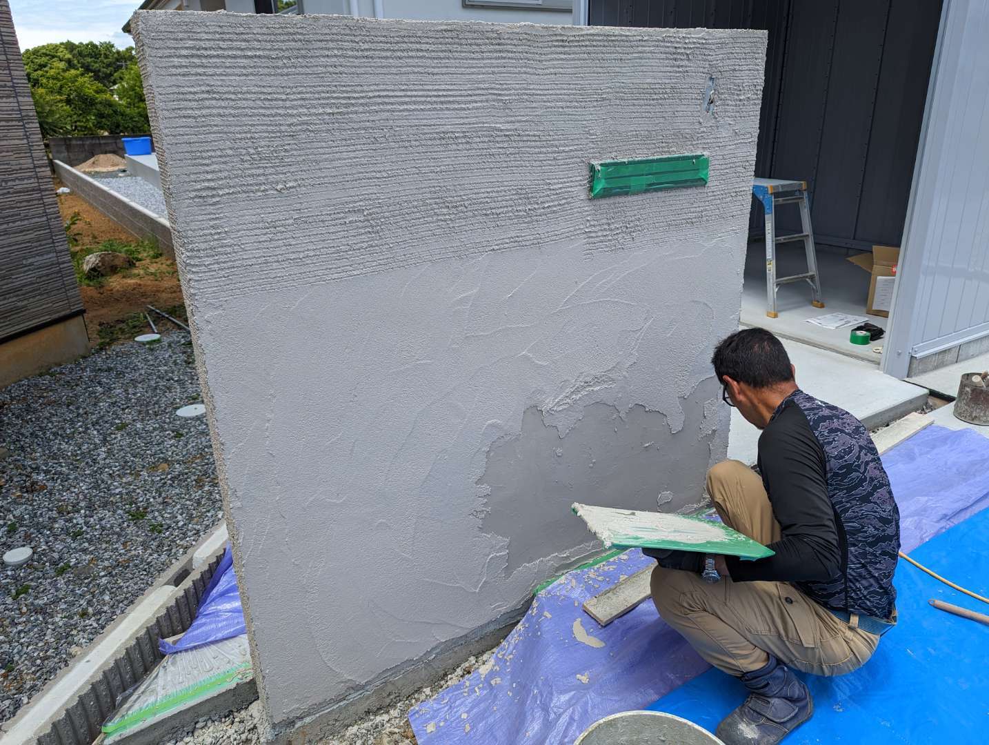 ベース(下地)モルタルを3mmの厚さで均等に塗りつけていきます💪
