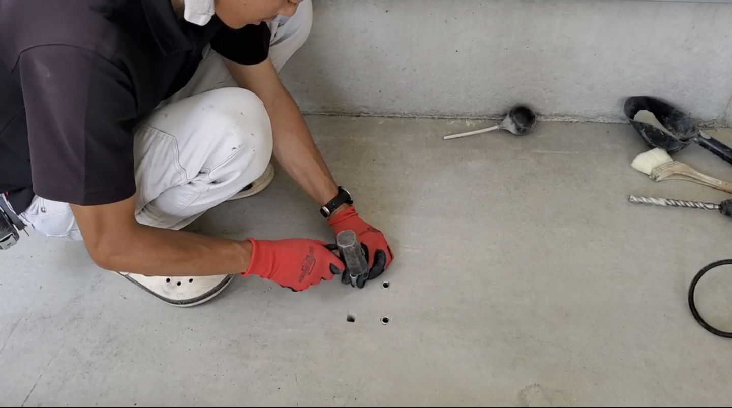 いきなり大きいドリルで穴を開けると炸裂してコンクリートが割れてしまうことがあるので、