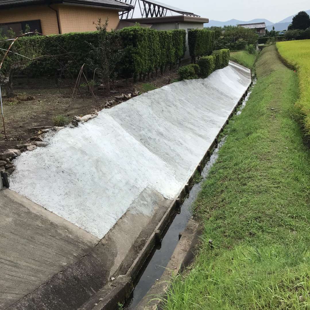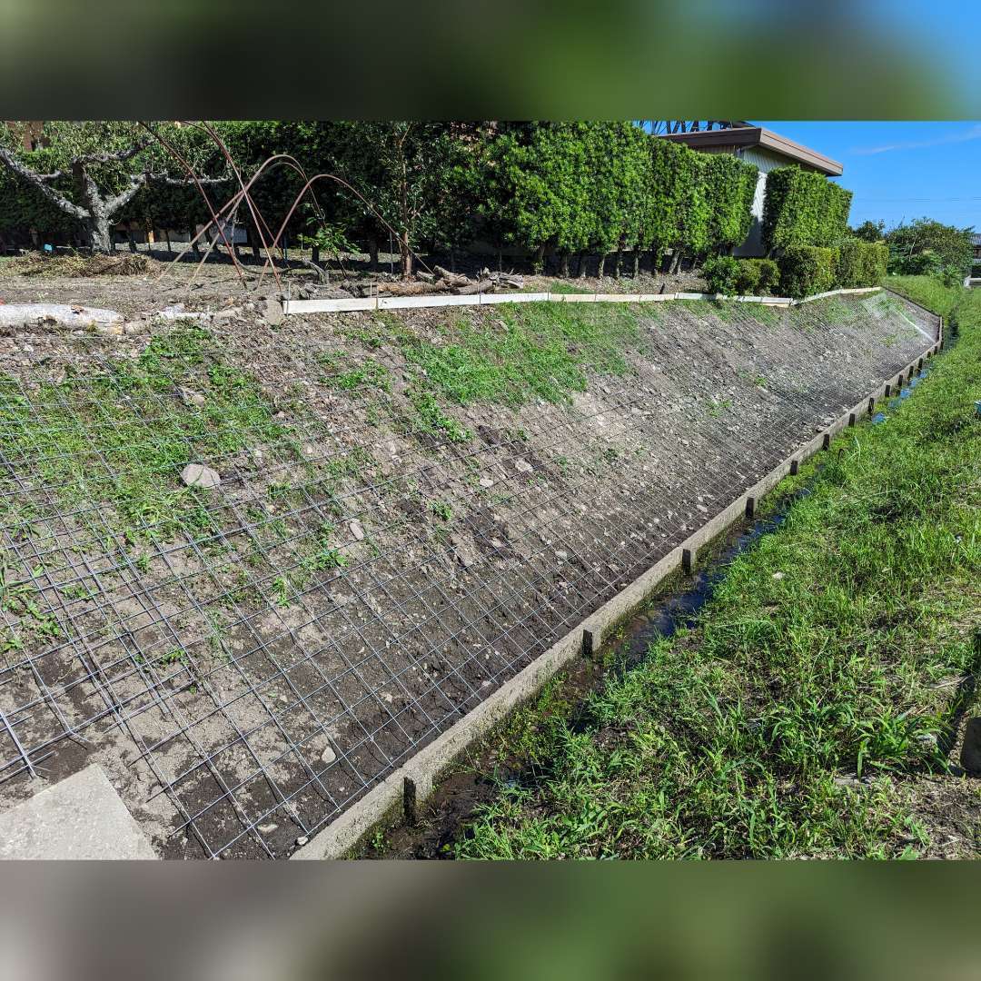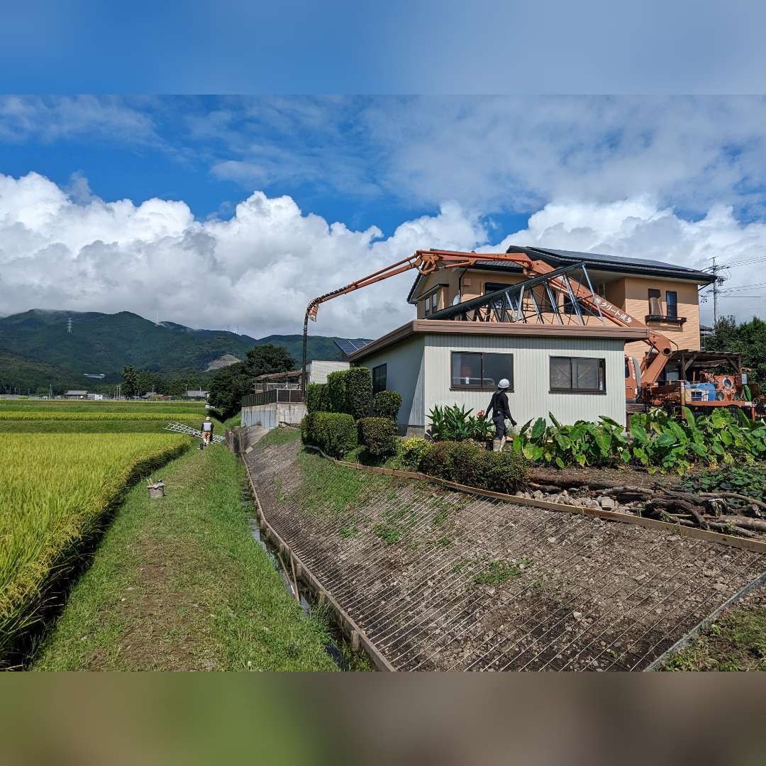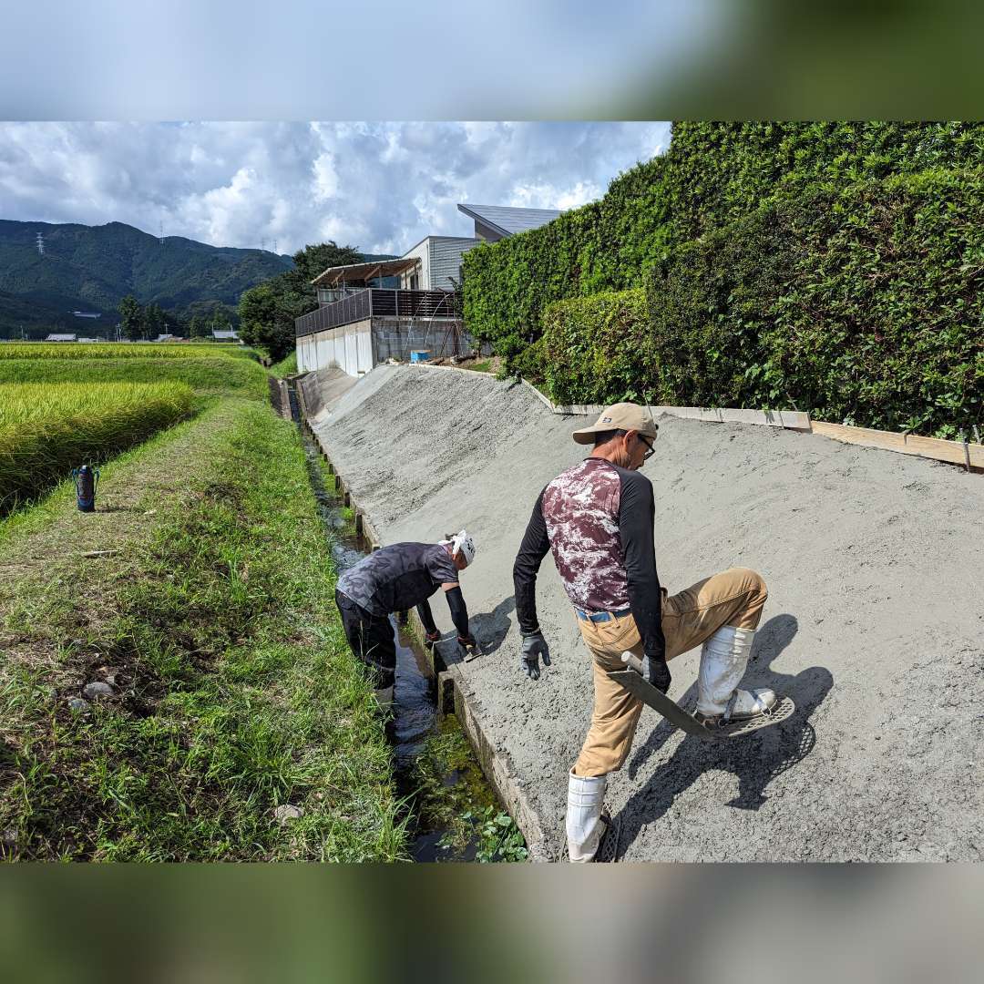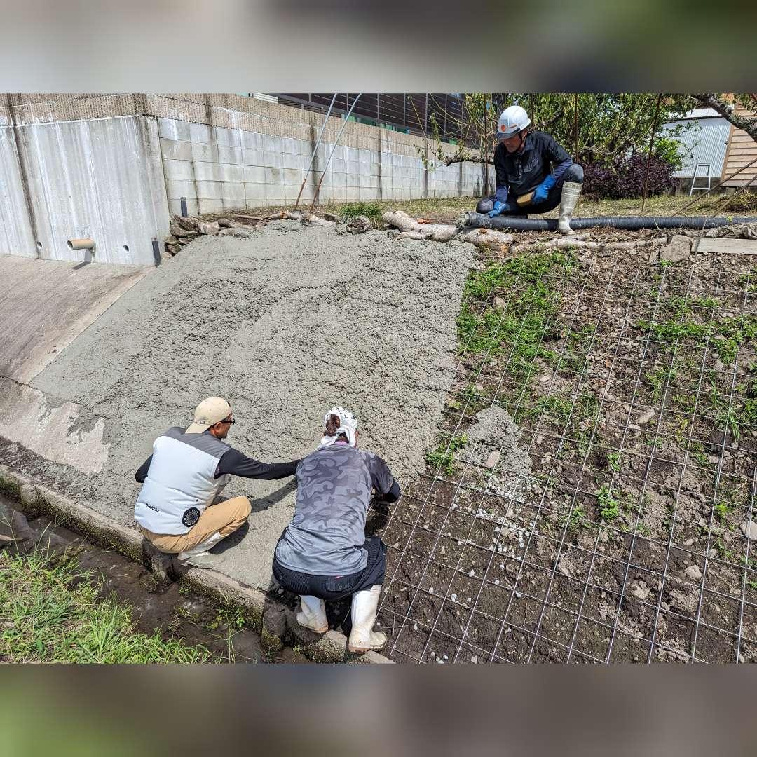 急斜面なのでコンクリートが下に流れないように、かき上げながら均していくのはとても大変でした🥵