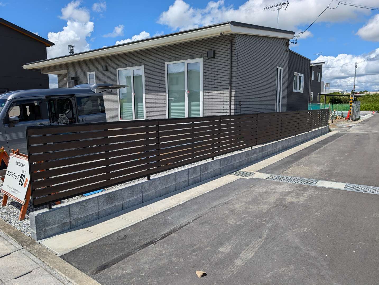道路に面している側のフェンスは木目調の目隠しフェンス👀