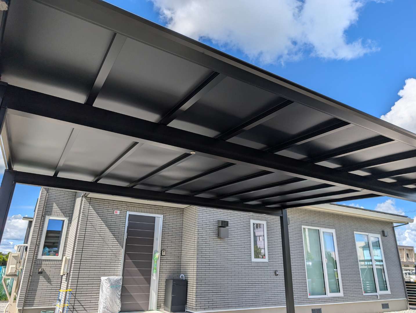 三協アルミのスカイリードにブラックポリカーボネート板を使用したフルブラック仕様😎