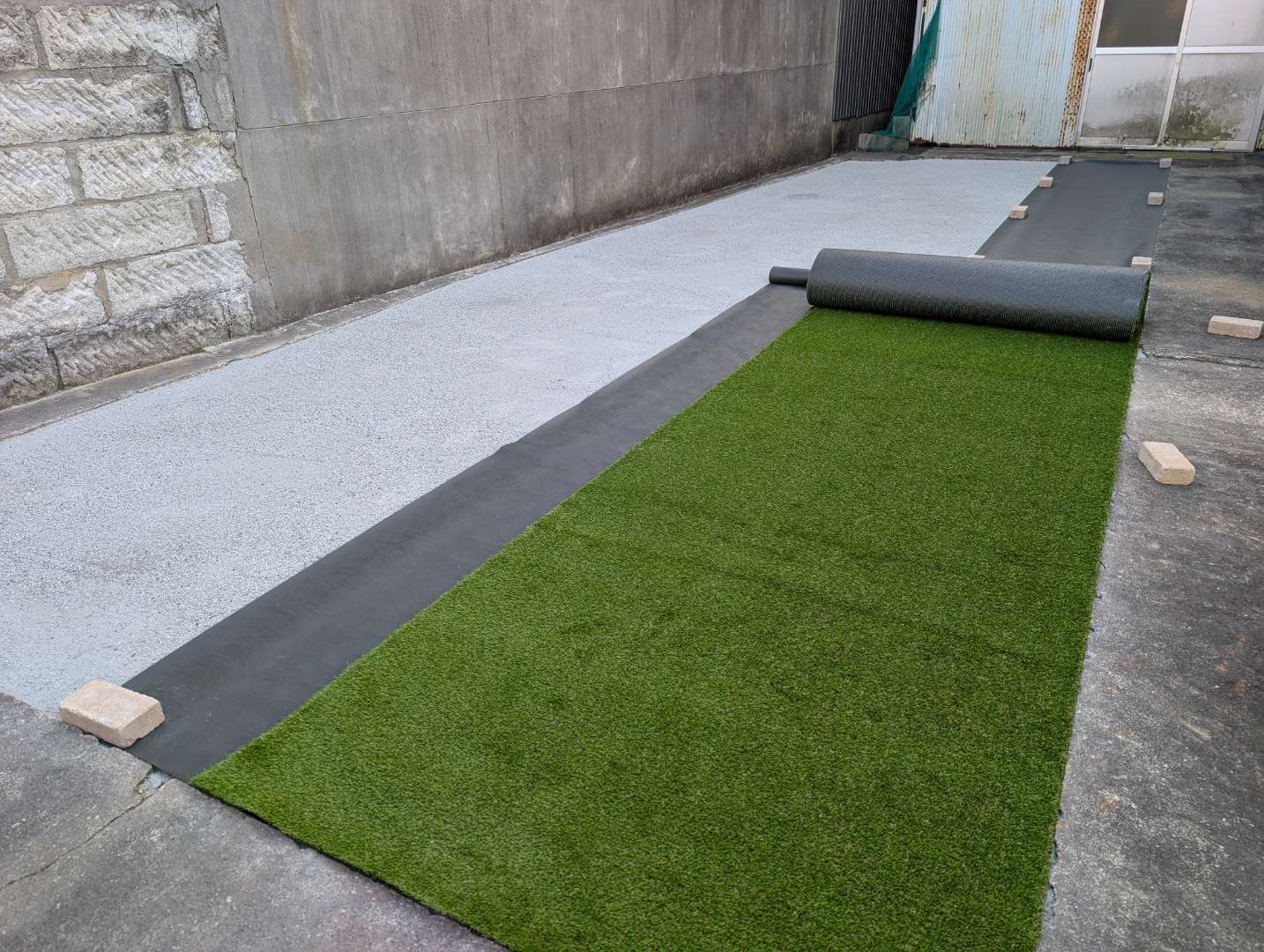 人工芝は下地の砂が大切で、しっかりと平らがとれていないとボコボコした仕上がりになってしまうので、丁寧に調整しました👍